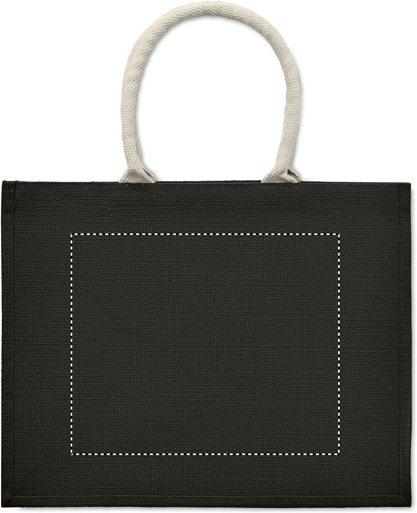 Einkaufs- oder Strandtasche aus laminierter Jute. Kurze Tragegriffe aus Baumwolle. Dieses Produkt ist nach OEKO-TEX® STANDARD 100 zertifiziert.